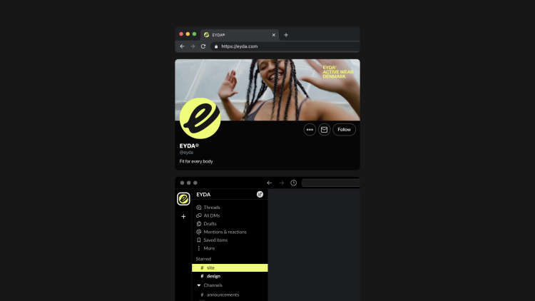 Designing a brand identity for physical products presents unique challenges and opportunities. For EYDA, every stitch, fabric choice, and color had to align with the brand’s new visual identity. Our team meticulously curated a motion style that reflects movement and dynamism, integral to athletic wear. We extended the visual language to every touchpoint, ensuring that whether a customer is interacting with EYDA through their apparel or packaging, they experience a consistent and engaging brand narrative. This holistic approach ensures that EYDA’s brand identity is as durable and flexible as the clothing itself.